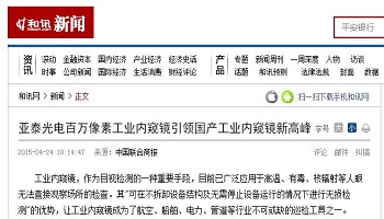 和訊網:亞泰光電工業內窺鏡引領國產工業新高峰