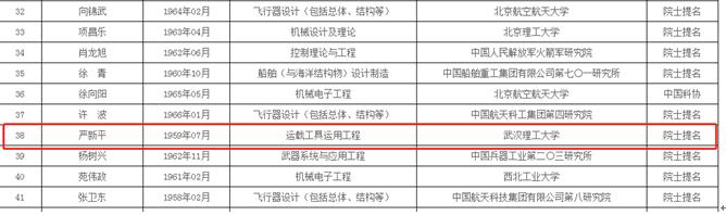 熱烈祝賀我專委會主任嚴新平同志入選中國工程院2019院士有效候選人