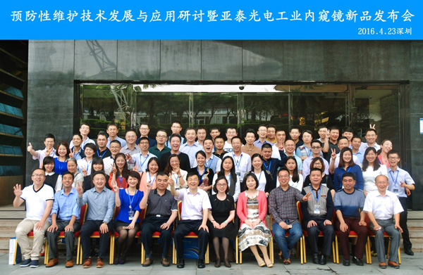 2016年4月23日,由深圳市亞泰光電技術(shù)有限公司主辦的“預(yù)防性維護(hù)技術(shù)發(fā)展與應(yīng)用暨SIE百萬像素工業(yè)內(nèi)窺鏡新品發(fā)布會”在深圳龍崗友和國際唐拉雅秀酒店圓滿舉行。
