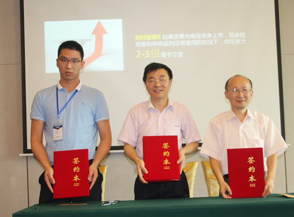 現(xiàn)場簽約的嘉賓與亞泰總經(jīng)理鄭翔(中間)合影留念
