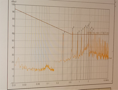 接著是更加嚴(yán)峻的考驗,在測試CE102 、RE102時波形出現(xiàn)了超標(biāo)現(xiàn)象。當(dāng)聽到波形超標(biāo)時腦子里浮現(xiàn)的第一反應(yīng)可能是電源部分的濾波處理出現(xiàn)了問題,由于現(xiàn)場沒有適合的元器件進行整改處理,同時離客戶規(guī)定拿到檢測報告僅剩下一周不到的時間。最后不得不頂著壓力通知結(jié)束測試,將設(shè)備帶回進行二次整改。若不解決CE102 、RE102的問題想拿到合格的檢測報告將遙遙無期。分析了超標(biāo)的波形后覺得問題并沒有想象中的那么糟糕,只要設(shè)備里增加某一型號的濾波器,再加強防護屏蔽增至雙層防護處理,或許能將超標(biāo)的波形壓下去。經(jīng)過二次整改后,與廣電計量院約定了時間進行測試。經(jīng)過了13小時測試后結(jié)果出來了,測試工程師表示整改后的波形非常穩(wěn)定,并當(dāng)場對我司研制的產(chǎn)品給予肯定。聽到消息后心里的大石頭終于可以落了下來,為上級領(lǐng)導(dǎo)交上一份滿意的答卷。