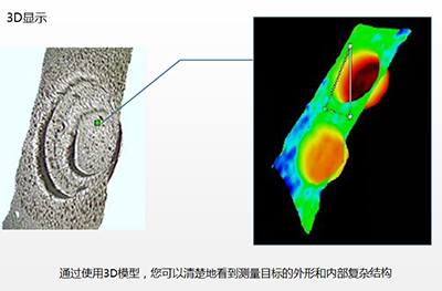3、立體顯示;通過使用3D模型,可以清楚的看到測量目標(biāo)的外形和內(nèi)部復(fù)雜結(jié)構(gòu)。