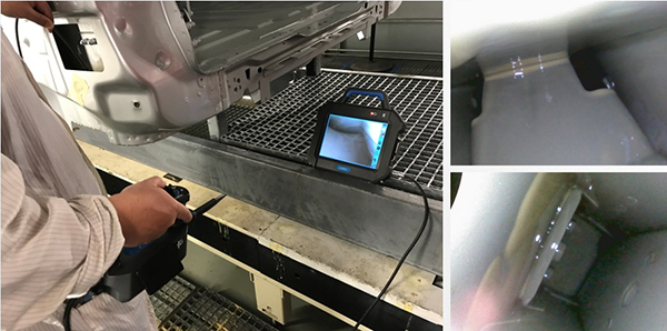 使用工業(yè)內(nèi)窺鏡作為一種可視的直觀檢查設(shè)備,效率很高。目前常用的檢查位置很多,包括發(fā)動(dòng)機(jī)的氣門位置附近的積碳、機(jī)加工的各種相交孔產(chǎn)生的毛刺、鑄造產(chǎn)生的鑄件存在的沙眼毛刺等缺陷、查看焊接位置的質(zhì)量及車身內(nèi)部填充的質(zhì)量等,并且,這些都成為了汽車制造中最重要的檢測(cè)位置。