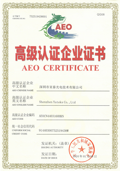 在新的歷史時期,亞泰光電已經(jīng)迎來了一個重要的里程碑——海關AEO高級認證。這一榮譽不僅是對我們企業(yè)實力的肯定,更是對我們未來發(fā)展的期待。