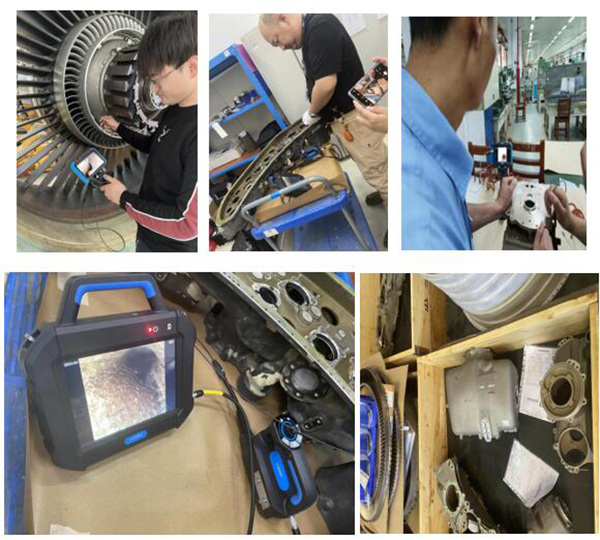 客機(jī)維護(hù)的工程師為提高巡檢和運(yùn)維的工作效率,同時(shí)檢查出發(fā)動(dòng)機(jī)內(nèi)部結(jié)構(gòu)損傷,提早發(fā)現(xiàn)和排查安全隱患,使用工業(yè)視頻內(nèi)窺鏡在大推力航空發(fā)動(dòng)機(jī),渦扇發(fā)動(dòng)機(jī),壓氣機(jī),發(fā)動(dòng)機(jī)葉片,空壓機(jī)葉片、燃燒室、油路和潤(rùn)滑部位進(jìn)行探傷和狀態(tài)檢查。針對(duì)空間狹小和特殊工件的部位,只能用特定鏡頭進(jìn)行觀察測(cè)量。因?yàn)闇u輪發(fā)動(dòng)機(jī)獨(dú)特的內(nèi)部結(jié)構(gòu)為檢測(cè)工作帶來(lái)巨大的挑戰(zhàn),所以要求內(nèi)窺鏡的結(jié)構(gòu)牢固、性能穩(wěn)定,有非常強(qiáng)的導(dǎo)向能力、明暗可按需調(diào)整的照明、清晰的動(dòng)/靜態(tài)畫質(zhì)以及良好的操控便攜性。