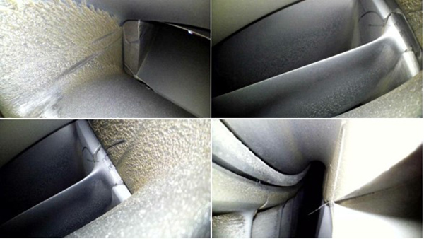 主要包括以下幾個(gè)方面:渦扇葉片的損傷和燒蝕情況,燃燒室內(nèi)的噴嘴積碳,火焰筒內(nèi)壁、穩(wěn)定器、燃油噴嘴防積碳帽罩表面的積碳。