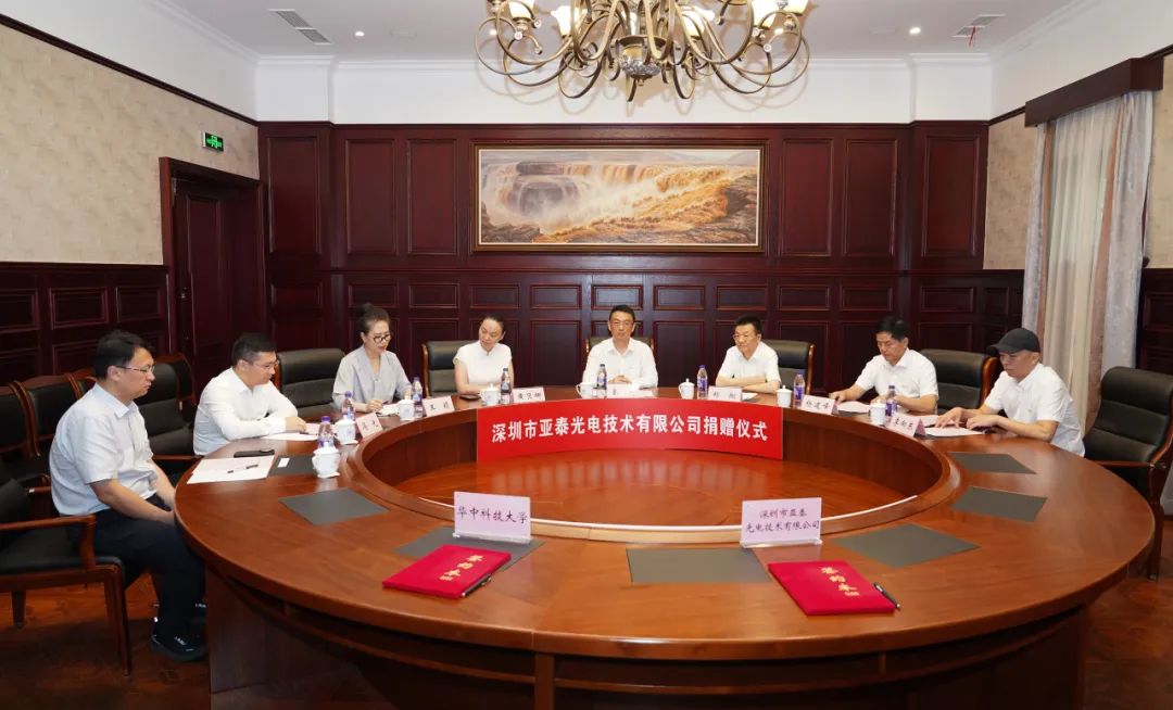 2025年7月17日,在華中科技大學(xué)梧桐語論道廳內(nèi),一場意義非凡的校企合作拉開了帷幕。作為國家級專精特新“小巨人”企業(yè),深圳市亞泰光電技術(shù)有限公司向其母?!A中科技大學(xué)慷慨捐贈了100萬元人民幣設(shè)立“亞泰光電獎教獎學(xué)金”,旨在支持教育事業(yè)的發(fā)展,推動科技人才的培養(yǎng)。此次捐贈不僅是對母校深厚情感的體現(xiàn),更是未來校企合作邁向新高度的重要里程碑。