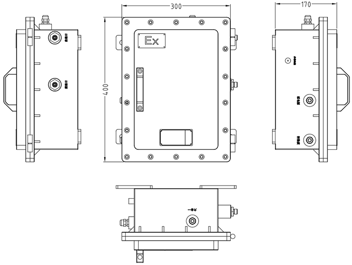 防爆在線油液監測裝置組成主要由電氣控制箱、傳感器隔爆箱、本安傳感器防護箱等組成。