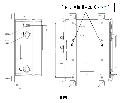 監(jiān)測箱內(nèi)部結(jié)構(gòu)組成:磨粒傳感器+清潔度傳感器+含水率傳感器+粘度傳感器+微量水傳感器+介電常數(shù)等,用戶可根據(jù)不同需求進行功能選配。監(jiān)測箱外觀結(jié)構(gòu)組成:監(jiān)測箱主體(1PCS)+掛墻固定板(2PCS)+天線。